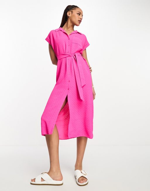New Look button through midi shirt dress in bright pink