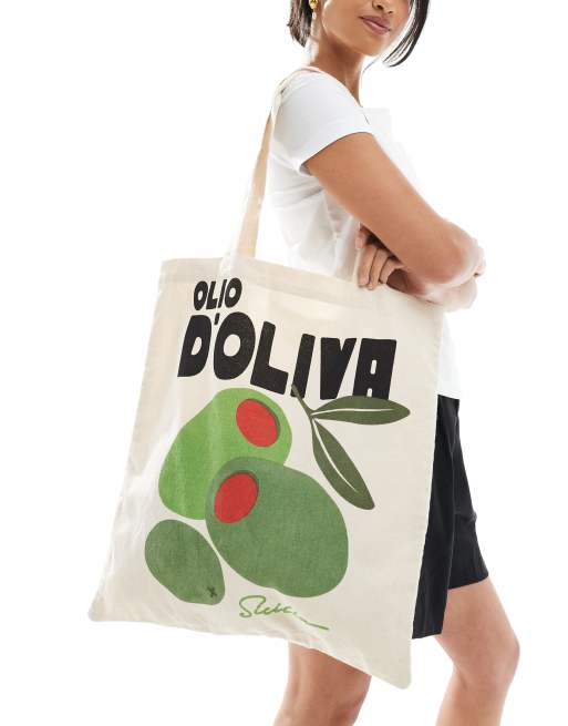 New Look canvas tote bag in olive print