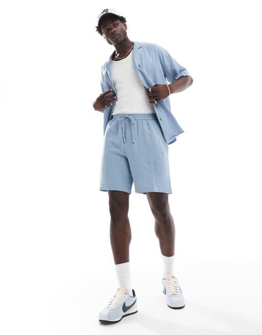New Look cheesecloth shorts co-ord in blue
