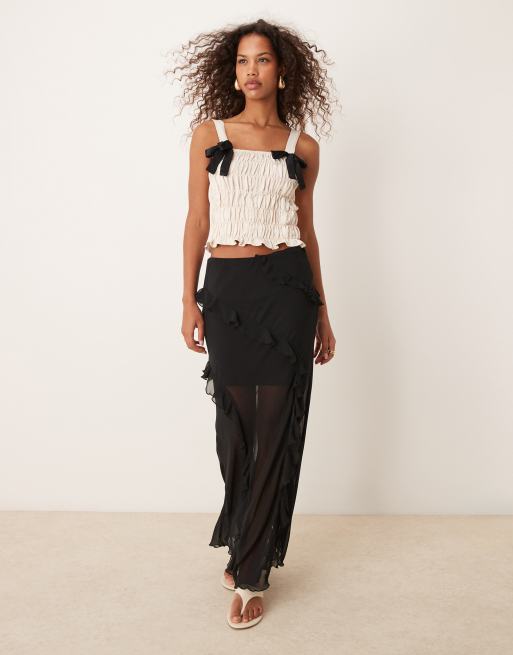 New Look chiffon ruffle maxi skirt in black