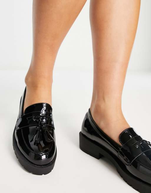 New Look chunky patent loafers in black