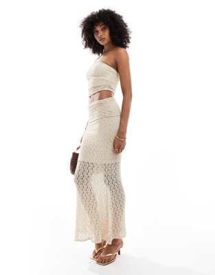New Look co-ord lace foldover midi skirt in off white