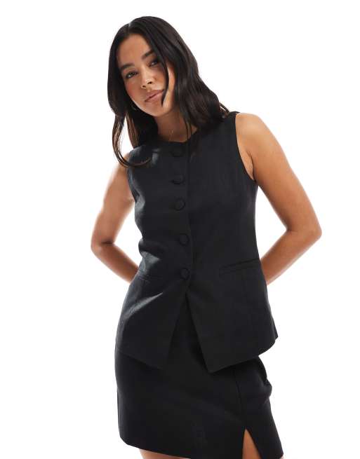 New Look co-ord longline linen waistcoat in black