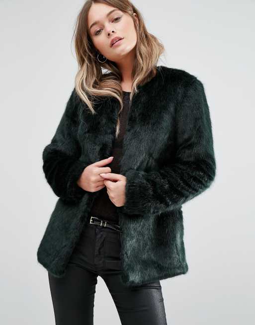 New Look Collarless Faux Fur Coat