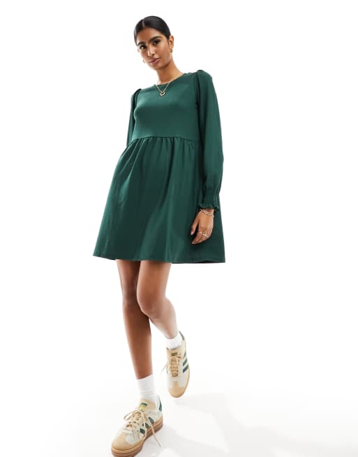 New Look crinkle smock mini dress in dark green
