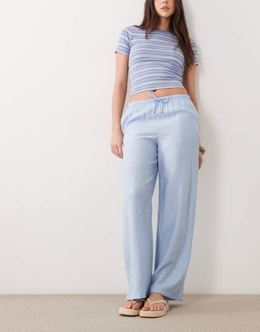 New Look crinkle wide leg trousers in blue