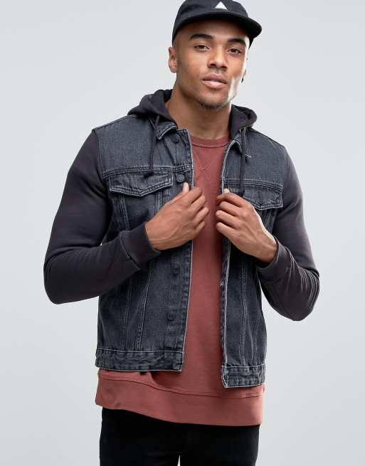 New Look Denim Hooded Jacket With Jersey Sleeves In Grey Wash