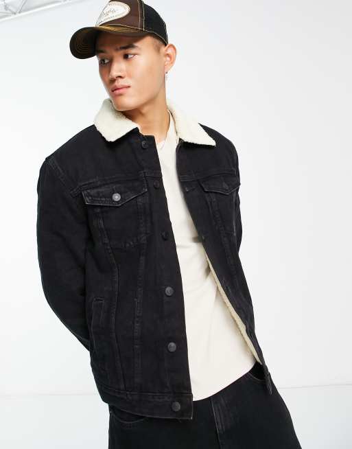 New Look denim jacket with borg lining in black