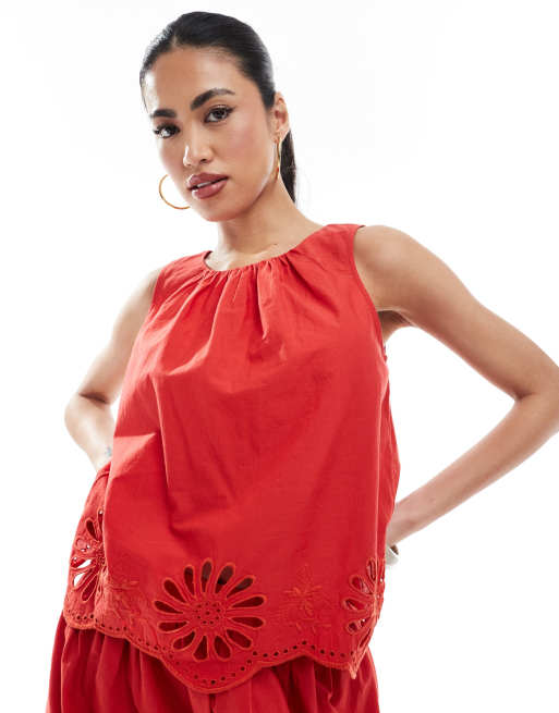 New Look embroidered hem co-ord in red