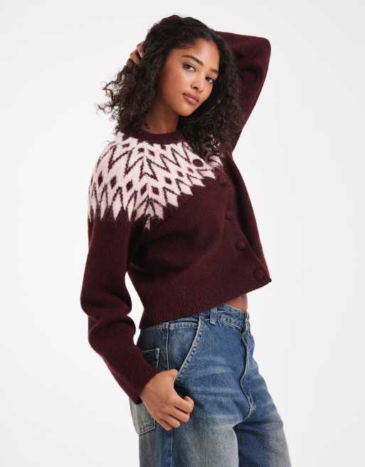 New Look fairisle crew neck cardigan in red