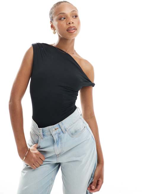New Look fallen shoulder bodysuit in black