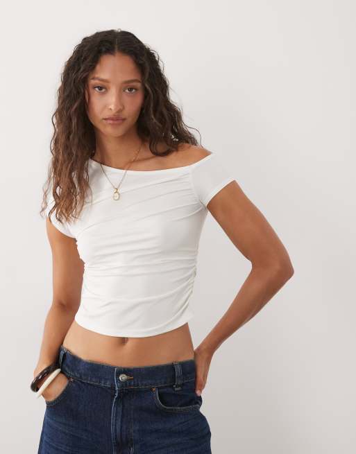 New Look fallen shoulder polyamide top in white