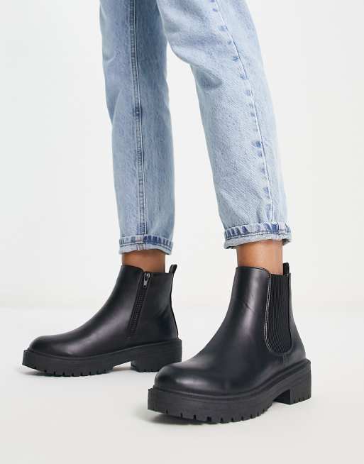 New Look flat chunky chelsea boot in black