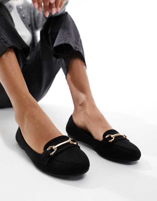 New Look flat loafers with gold bar in black