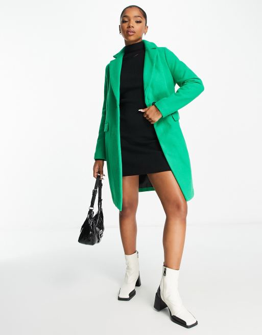 New Look formal lined button front coat in bright green