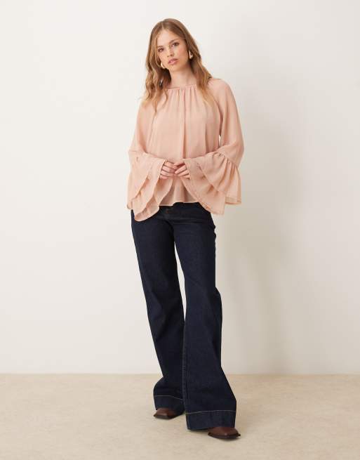 New Look frill sleeve shell top in pale pink