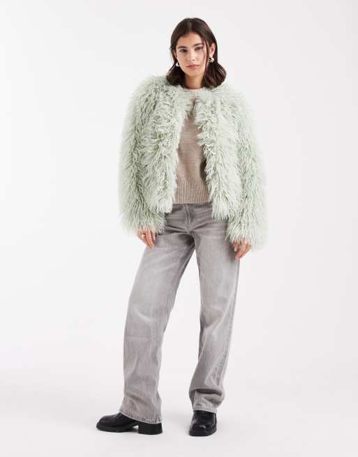 New Look fur coat in light green