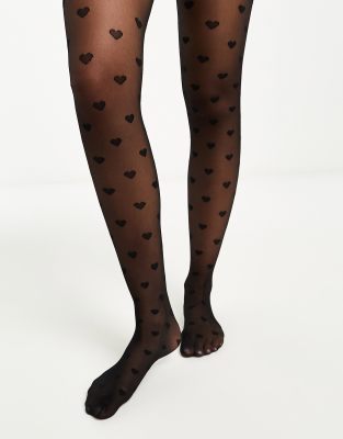 New Look heart tights in black