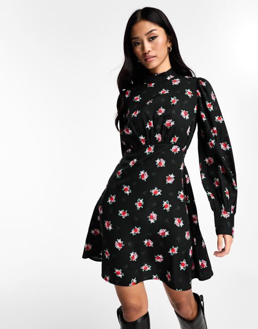 New Look high neck long sleeve mini dress in ditsy floral print