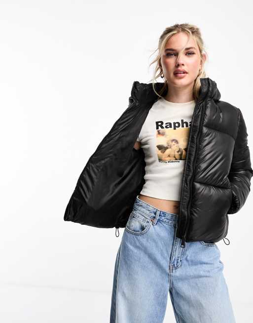 New Look high shine puffer jacket in black