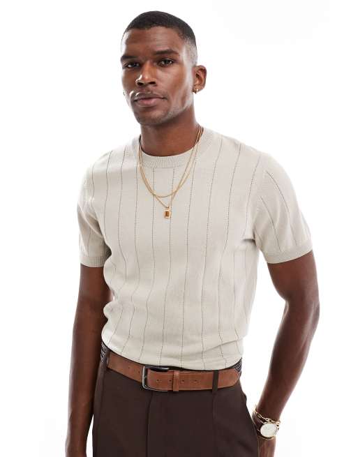 New Look knitted short sleeve t-shirt in off white