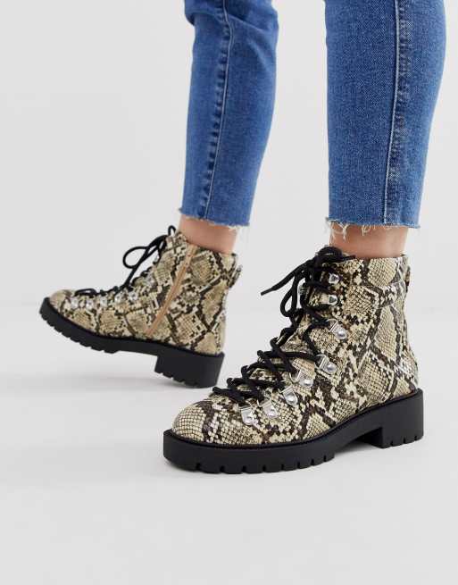 New Look lace detail chunky flat hiker boots in animal print