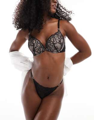 New Look lace heart embroidered thong in black