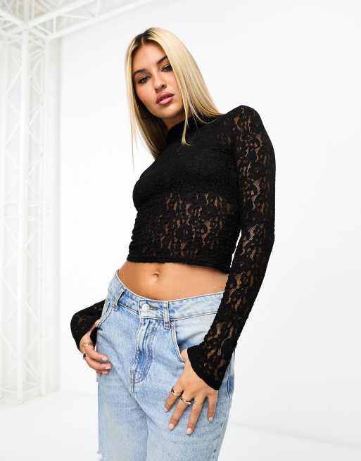 New Look lace high neck top in black