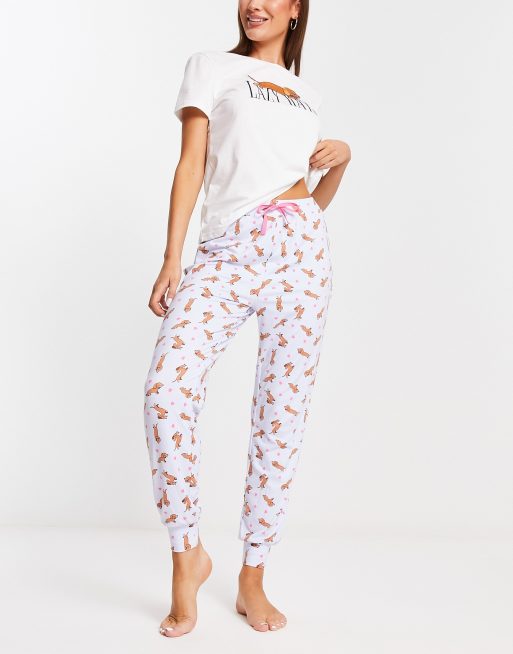 New Look Lazy Days dog t-shirt and jogger pyjama set in white