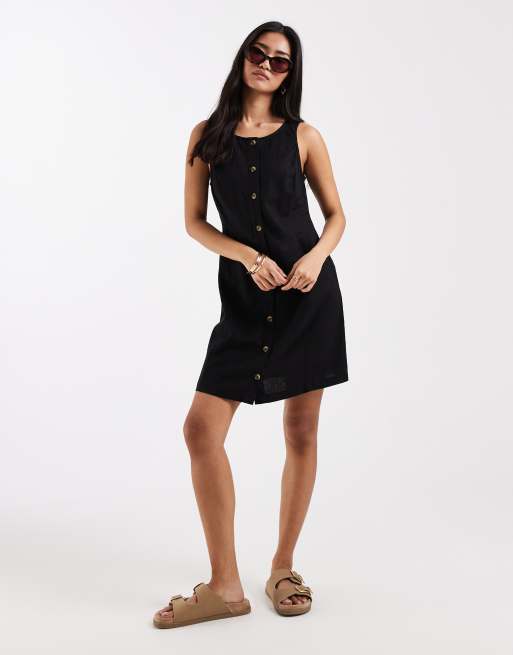 New Look linen blend button through mini dress in black