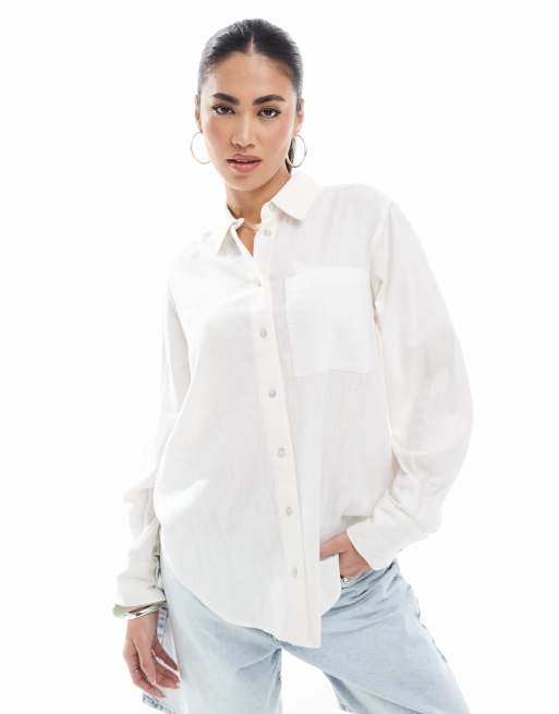 New Look long sleeve linen shirt in white