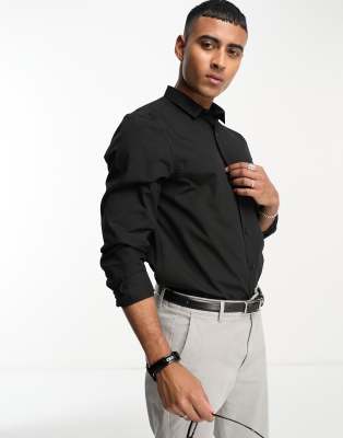 New Look long sleeve poplin shirt in black