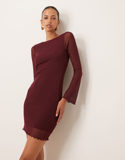 New Look mesh mini dress in burgundy