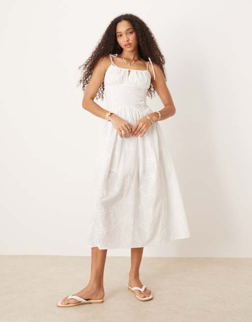 New Look milkmaid broderie strappy midi dress in white