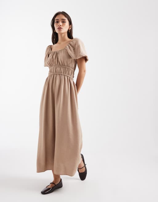 New Look milkmaid midi dress in camel
