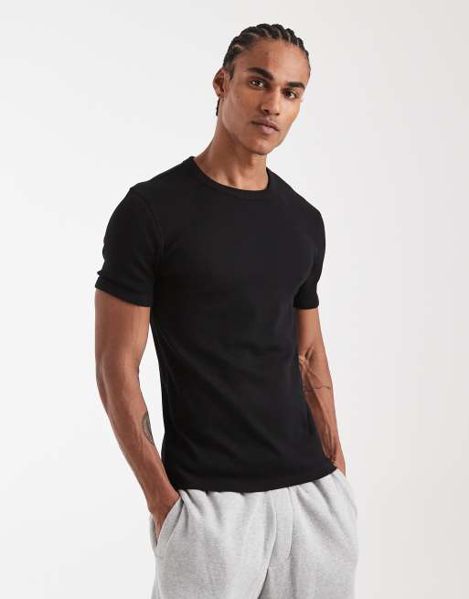 New Look muscle fit ribbed t-shirt in black