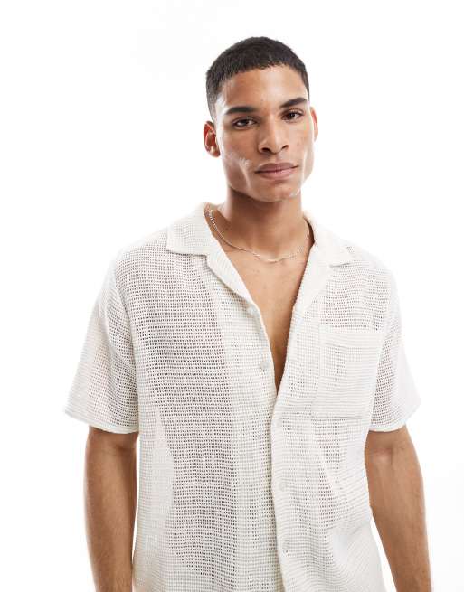 New Look open weave revere shirt co-ord in white