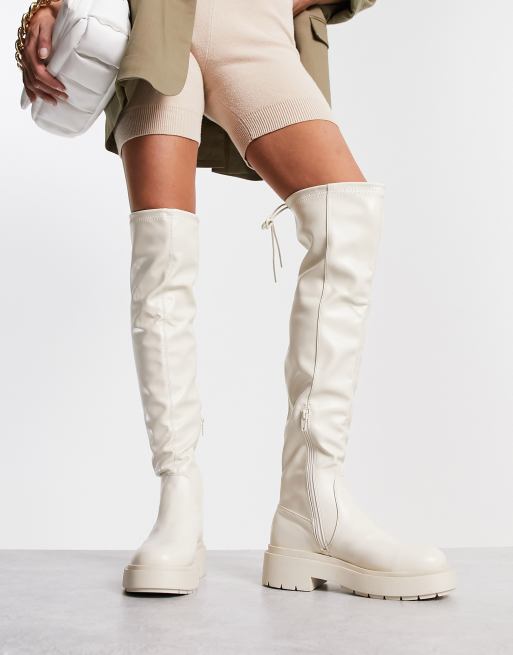 New Look over the knee chunky stretch flat boots in Cream