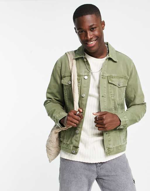 New Look oversized denim jacket in dark khaki
