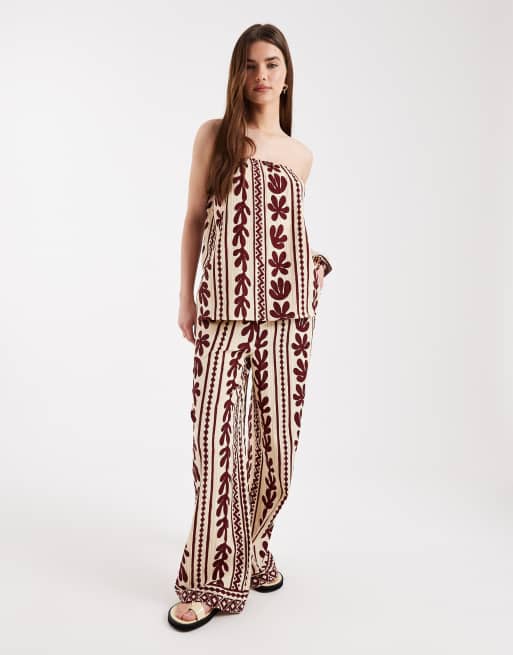 New Look patterned trousers & bandeau co-ord in brown