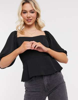 New Look peplum hem square neck top in black