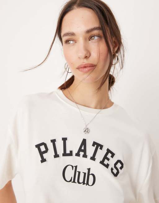 New Look pilates club oversized t-shirt in white