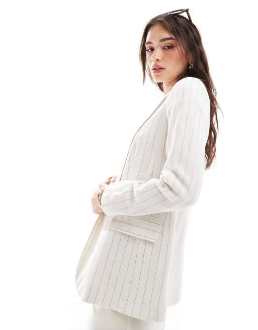 New Look pinstripe linen blazer in white