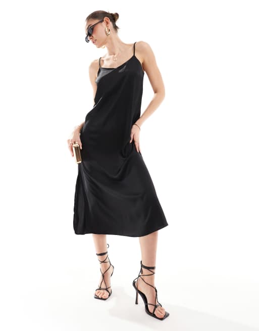 New Look plain satin strappy midi dress in black