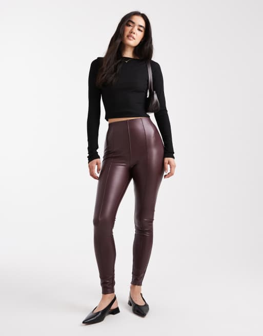 New Look PU leggings in burgundy