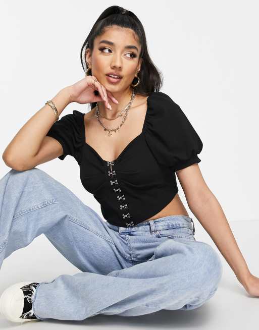 New Look puff sleeve corset top in black