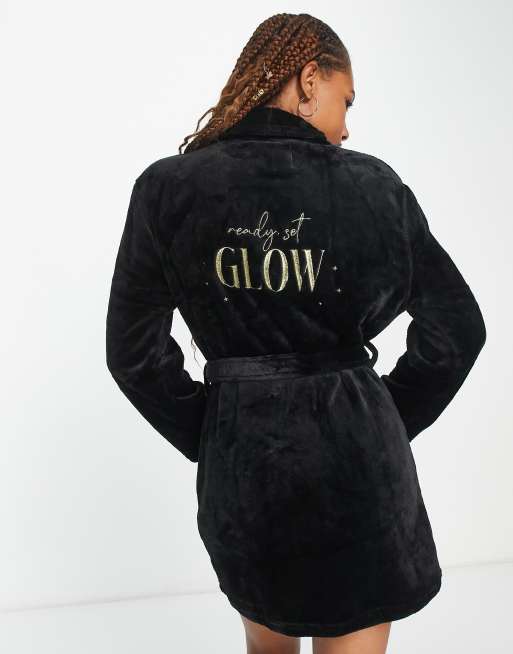 New Look 'ready, set, glow' slogan dressing gown robe in black