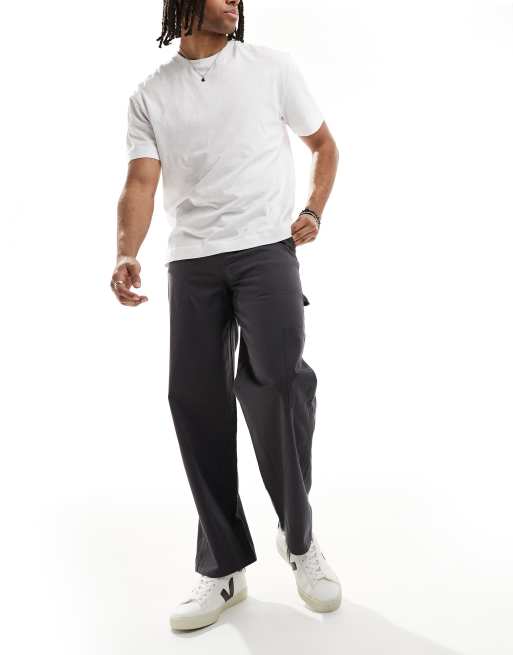 New Look relaxed carpenter trousers in charcoal grey