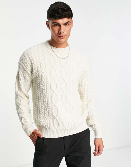 New Look relaxed fit cable crew neck jumper in off white