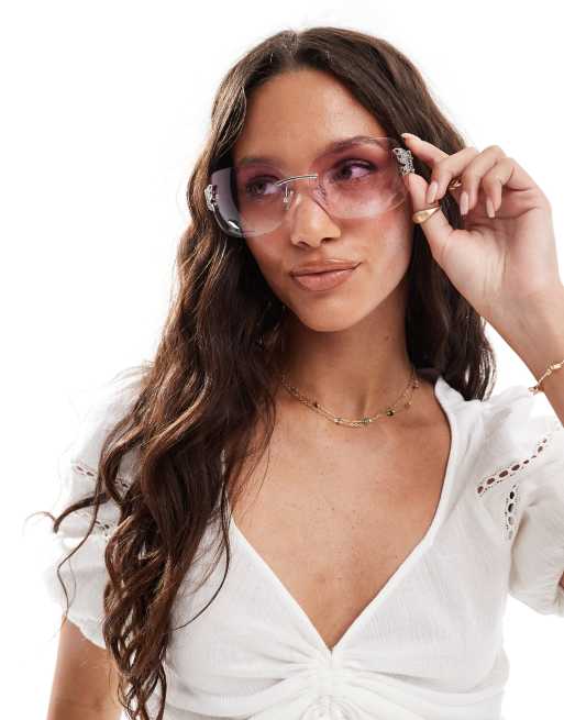New Look rimless butterfly sunglasses in pink